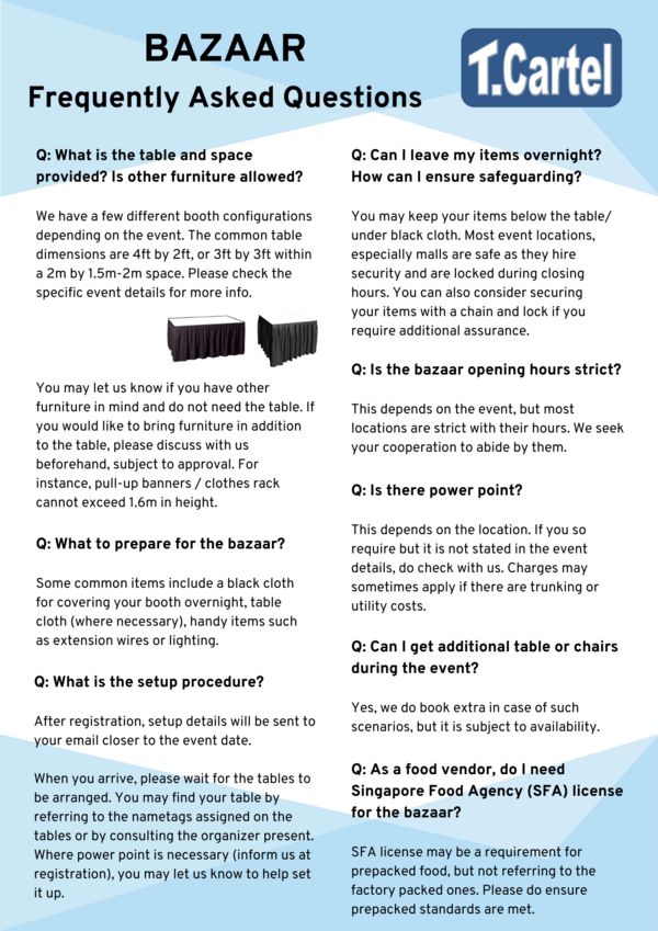Note: Vendors may propose the dates they wish to take. Any day for month of March and April 2026. Subjected to availability. First come first serve!